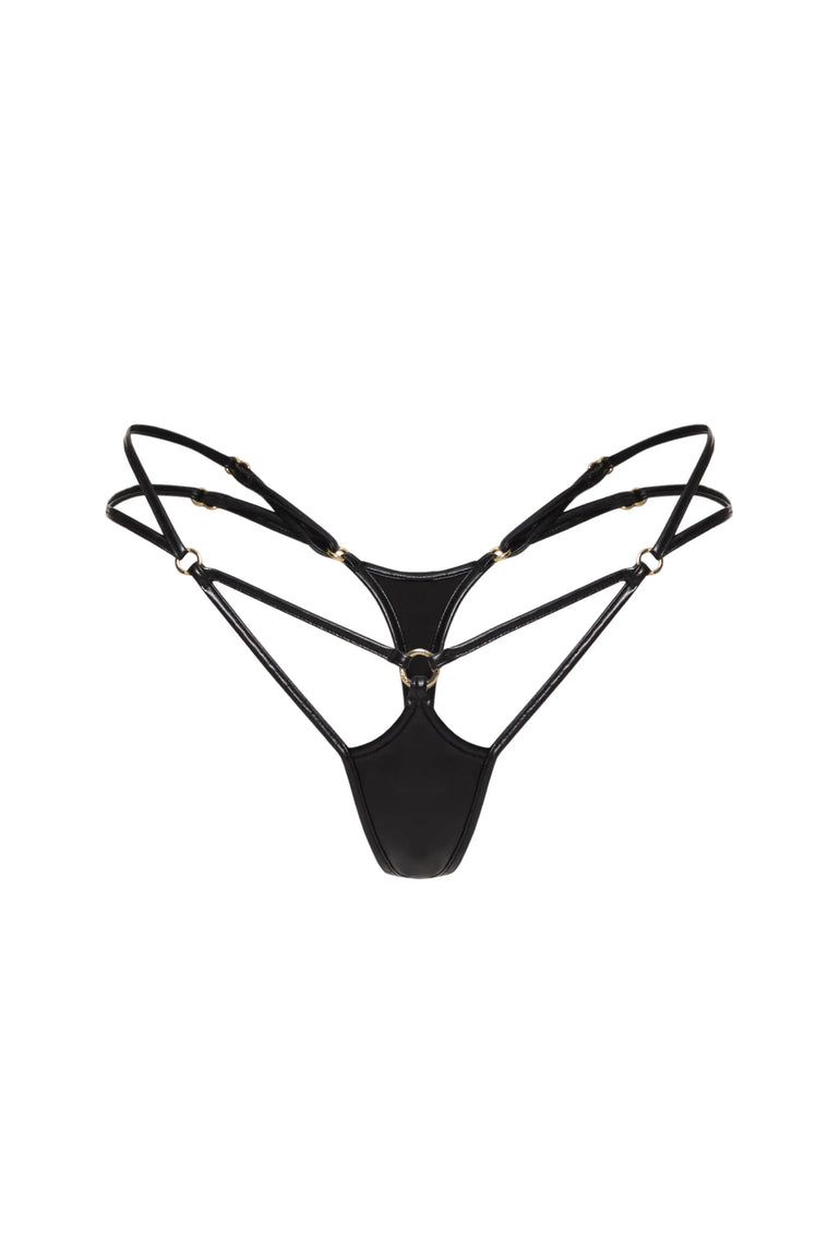 These Niki Panties have a unique and open design. Thin straps and gold touches make them eye-catching. The shape is bold and stylish. They feel light and comfortable to wear. Perfect to complete your matching set.